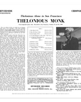 Thelonious Alone In San Francisco is the third solo album from legendary jazz pianist Thelonious Monk, following Piano Solo and Thelonious Himself. Recorded at Fugazi Hall without a live audience the album was recorded in October 1959. This new edition of the album is released as part of the Original Jazz Classics Series on 180-gram vinyl pressed at RTI with all-analog mastering from the original tapes at Cohearent Audio and a Stoughton Tip-On Jacket.